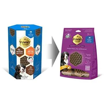 Introducing **Yummy Combs Dental Treats for Dogs**, the ultimate dental care solution that your furry friends will absolutely love! Crafted for medium-sized dogs, these 24oz treats are not just a snack; they are a promise of health and happiness. Packed with **44% superior protein** and enriched with **12 wellness ingredients**, Yummy Combs cater to your dog's heart, joints, gut, skin, coat, and, most importantly, their oral health. The unique honeycomb shape provides effective **360-degree cleaning** capabilities,...