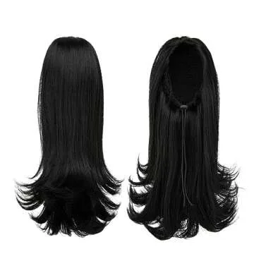 YUMOREAL Short Black Drawstring Ponytail Hair Extension for Black Women 14 Inch Straight Ponytail with End Curls Synthetic Fake Hairpieces
