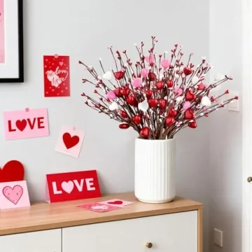 Show moreTransform your space into a romantic haven this Valentine’s Day with the Yunfan 6Pcs Valentines Day Decorations. With each piece measuring an impressive 17 inches, these stunning heart-shaped berry picks in vibrant red, pink, and white tones promise to elevate your home's ambiance. Whether you're sprucing up a vase, creating an enchanting table centerpiece, or adding decorative touches to your living room or bedroom, these stems are perfect for a multitude of uses. Their handcrafted design, inspired by romance, ensures that each piece brings a heartfelt charm to your decor.