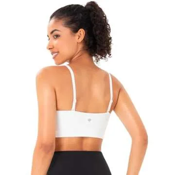 YUNOGA Women's Adjustable Spaghetti Thin Strap Sports Bra Square Neck Padded Wireless Workout Yoga Bra (S, White)
