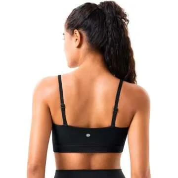 YUNOGA Womens Adjustable Spaghetti Thin Strap Sports Bra Square Neck Padded Wireless Workout Yoga Bra (S, Black)