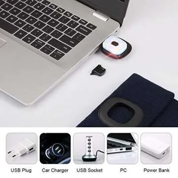 YunTuo Beanie with The Light for Kids, Unisex USB Rechargeable Headlamp Hat Winter Knitted Night Lighted Cap Flashlight, Gifts for Kids Boys Girls (Navy Blue)