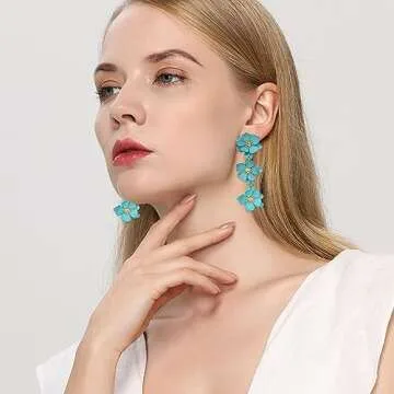 YUNXI Boho Metal Poppy Flower Dangle Earring Matte Painted Dual 3 Layer Tassel Fashion Bohemian Flower Floral Petal Tiered Drop for Women (Green)