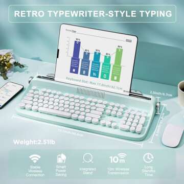 Show more Transform your workspace with the YUNZII B503 Pastel Retro Typewriter Keyboard, a remarkable blend of vintage charm and modern technology. This aesthetically pleasing keyboard brings a pop of color to your office or home setup, featuring a pastel color palette that elevates your desk decor. Each key is designed with a delightful touch and sound, reminiscent of classic typewriters, making typing a pleasurable experience.