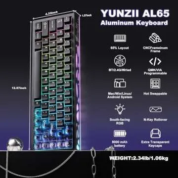 When compared to other popular brands in the market, the YUNZII AL65 stands out with its all-aluminum construction and unique gasket mount design, providing a level of comfort and quality that many plastic-keyboard competitors simply cannot match. While brands like Keychron and Corsair offer solid options, YUNZII's combination of features, price point, and aesthetic appeal positions it as a top contender for anyone in the mechanical keyboard space.