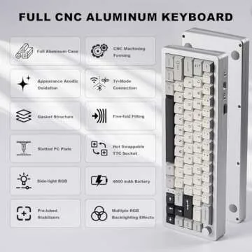 YUNZII AL66 Wireless Mechanical Keyboard,65% Knob Control Aluminum Gaming Keyboard BT/2.4G/Wired Hot Swappable Pre-lubed Switches, Gasket Mounted RGB Keyboard for Win/Mac(Milk Switch, Silver)