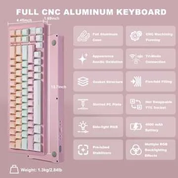 One of the most remarkable aspects of the YUNZII AL71 is its noise-absorbing gasket mount technology, setting it apart with minimized vibrations for a quieter typing experience. Whether you choose the 3-pin or 5-pin mechanical switches, enhanced sound-dampening features like poron foam and PET sound pads ensure every keystroke is smooth and quiet, perfect for busy environments or shared spaces.