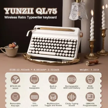 What sets the YUNZII QL75 apart from other mechanical keyboards on the market is its combination of retro style with high-tech functionality. While many competitors offer standard mechanical designs, the QL75 provides a true vintage typewriter experience with the convenience of modern connectivity options. Unlike typical models that focus only on linear or tactile feedback, the QL75 allows users to personalize their typing experience through its hot-swappable features. Furthermore, while many keyboards lack robust RGB features, QL75 shines with vibrant backlighting options that can be customized through QMK/VIA programming, making it ideal for both gamers and typists alike.