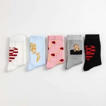 Show moreStep up your sock game with the Yuoos TS Women’s Socks, designed specifically for the passionate music fan. These socks are crafted from a blend of super-soft cotton yarn infused with a hint of spandex, ensuring an outstanding fit and comfort for sizes 6-12. Each pair features unique designs inspired by popular albums, allowing you to showcase your fandom in style. The elastic cuff tab design not only keeps them securely in place but also adds a fashionable touch.