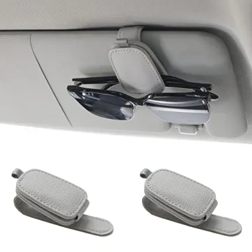 Show more Introducing the Yuoyar 2 Packs Sunglasses Holders for Car Visor, a game-changing accessory designed to enhance your driving experience while providing unmatched practicality and style. Crafted with high-quality materials, these magnetic leather sunglasses holders offer a seamless blend of functionality and elegance, making them the perfect addition to any car. With an universal fit, this product easily clips onto your car's sun visor, ensuring swift access to your essentials—be it sunglasses, parking tickets, or cards—without the fuss of rummaging through a cluttered interior.