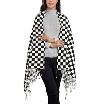 YUOYISIB White and Black Checkerboard Plaid Scarf Women'S Fashion Scarves Dalmatian Print Comfortable Long Shawl Winter Soft Warm Scarf For Women Girls