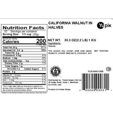 Yupik Raw California Walnuts, Halves & Pieces, 2.2 lb, Kosher, Gluten-Free, Vegan, Unsalted Nuts, Unroasted, Source of Omegas, Healthy Snacks, Nut Topping & Inclusion, Ideal for Baking & Cooking