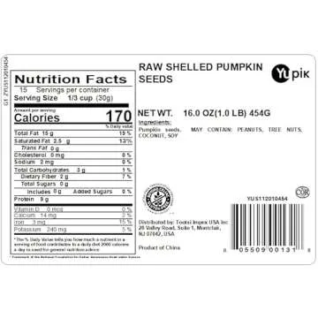 Yupik Raw Pumpkin Seeds, No Shell, 1 lb (16 oz), GMO-Free, Gluten-Free, Kosher, Shelled Pepitas, Salt-Free, Oil-Free, Plant-Based Protein, Source of Fiber, Healthy Snacks, Ideal for Baking & Topping