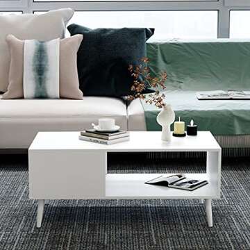 Yusong Modern Wood Coffee Table - Retro Mid-Century Center Table with Storage
