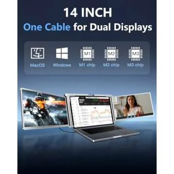 Show moreUpgrade your laptop workspace with the YUTOO Triple Laptop Screen Extender, designed to transform your laptop experience by providing an expansive visual setup that enhances productivity. This sleek and portable monitor extender is compatible with M1, M2, M3 MacBooks, as well as Windows laptops, accommodating screen sizes from 13.3” to 17.3”. Its seamless connection using just one cable (Type-C or USB) eliminates the hassle of complicated setups, allowing you to enjoy a straightforward and effective multi-screen solution in seconds.