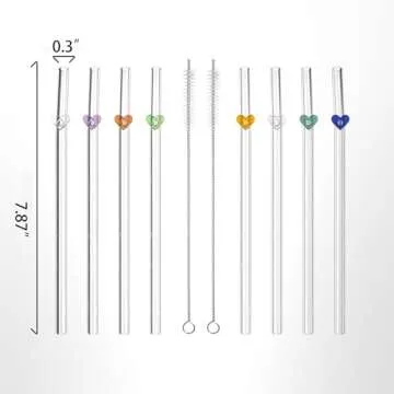 YUTRENN Reusable Glass Straws 8 Colorful Heart-Shaped Bent Straws with Cleaning Brushes, 8"x 0.3" Thick Clear Drinking Straw Set High Borosilicate Glass Drinking Straw for Tumblers 10 Pack Gift Wrap