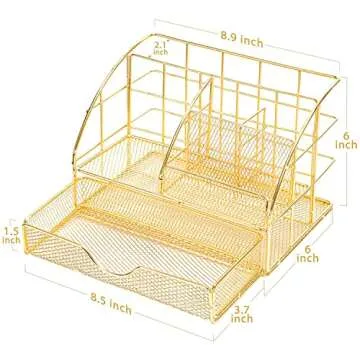 The yuun desk organizer is constructed with high-quality metal and features a durable rust-resistant plating finish.