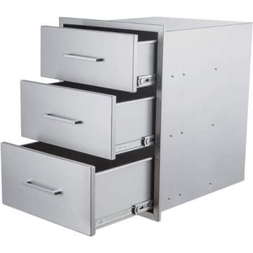 Show moreIntroducing the YuxiangBBQ Outdoor Kitchen Triple Drawer, a must-have storage solution that revolutionizes your outdoor kitchen experience! Measuring 18"W x 24"H x 23"D, this stylish and functional drawer system combines high-grade stainless steel construction with modern design, ensuring it withstands the elements while adding sophistication to any outdoor setting.