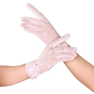 Yuyeran Summer Women Sun UV Protection Lace Gloves Ladies Short Driving Gloves Touch Screen (Pink)