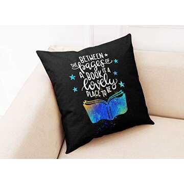 Yuzi-n Between The Pages of A Book is A Lovely Place to Be Pillow Covers for Home Book Room Reading Room Sofa Couch Decor - Book Lover Decor Gifts for Teens Kids Men Women - 18 x 18 Inch