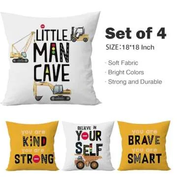 Yuzi-n Construction Trucks Pillow Cases - Set of 4 - 18 x 18 Inch for Kids Room