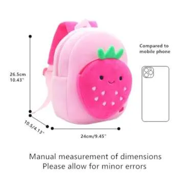 Yvechus Toddler Backpack Zoo Plush Mini Daypack Animal Cartoon Travel Bag for Baby Girl Boy (Strawberry)