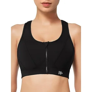 Yvette Zip Front Sports Bra - High Impact Sports Bras for Women Plus Size Workout Fitness Running, Black, M Plus