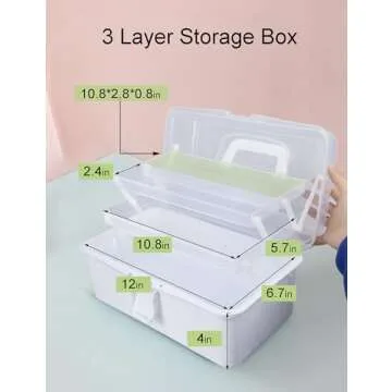 YVUDW White Craft Art Organizer Storage Tool Box 3 Layer Storage Box with Handle Sewing Box Medicine Storage Box Organizer Womens Cute Toolbox