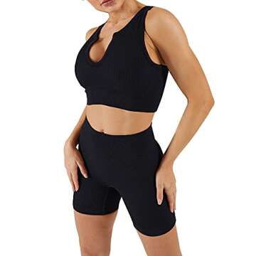 YVYVLOLO Workout Sets for Women 2 Piece Seamless Ribbed Sports Bra High Waist Yoga Shorts Outfits(Y429-Black-S)