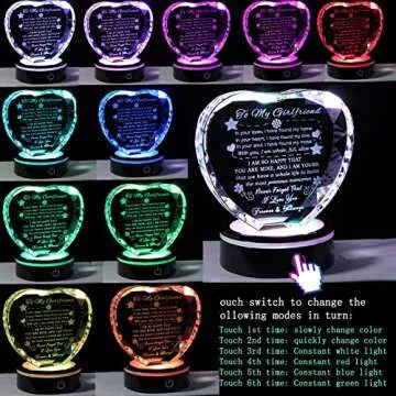 YWHL Gifts for Girlfriend with Colorful Base Romantic Heart Crystal Keepsakes to My Girlfriend Gifts from Boyfriend on Birthday Valentine Day for Girlfriend I Love You Gifts for Her