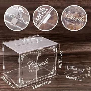 Ywlake Acrylic Wedding Card Box Money Post Gift Box Holder, Clear Card Box Large Letter Envelope Boxes with Lock and Slot for Reception Anniversary Birthday Party Baby Shower
