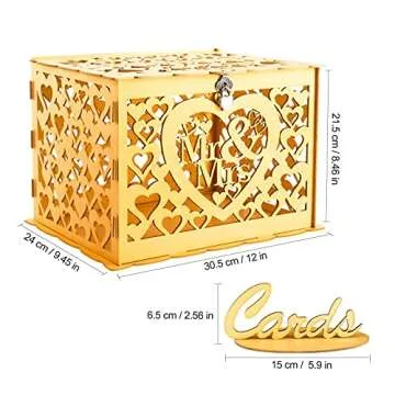Show moreElevate your special occasions with the **Ywlake Wedding Money Box Holder**, a beautifully designed rustic wooden card box perfect for weddings, anniversaries, graduations, and birthday parties. Measuring at a generous **12 x 8.5 x 9.5 inches**, this card box is not only visually appealing but practical, capable of holding **up to 255 cards**. Its charming gold accents and elegant **Mr & Mrs** inscription make it a delightful addition to any décor style, blending seamlessly with a variety of themes. Crafted from sturdy materials, it ensures that your guests’ well-wishes and contributions are secured throughout the event, allowing you to focus on creating unforgettable memories.