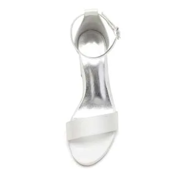 YWXYMGE Block Heel Wedding Sandals for Bride - Open Toe Satin Prom Evening Formal Shoes