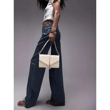 YXBQueen Quilted Handbags for Women Chain Crossbody Bags Chevron Faux Leather Clutch Purses for Women (White)