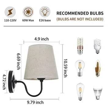 Show more The Industrial Wall Sconces Set of Two is the perfect lighting solution to elevate your space with a touch of modern elegance. Designed with a stylish beige fabric shade, these sconces soften the light to create a cozy and inviting atmosphere in any room. Whether you're looking to enhance your living room or brighten up a hallway, these fixtures seamlessly blend modern and retro aesthetics, making them a versatile choice for various decor styles.