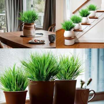 YXYQR 18PCS Artificial Grass Plants Outdoor UV Resistant Bulk Fake Faux Bushes Flowers Mums Outside Faux Plastic Greenery Shrubs Arrangement for Home Garden Backyard Window Box Hanging Basket