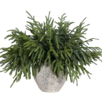 Show moreElevate your holiday decor with the beautifully crafted YXZZWL 16 Pcs Christmas Norfolk Pine Branches. Designed to replicate the soft, natural elegance of real Norfolk pine, these exquisite branches are perfect for transforming any space into a festive winter wonderland without the hassle of maintenance. Each branch measures 18 inches, offering the ideal size for various decorating possibilities—from Christmas trees to stunning centerpieces. Made from high-quality plastic through a unique process that mimics the texture and appearance of real pine, these branches provide the beauty of nature at your fingertips.