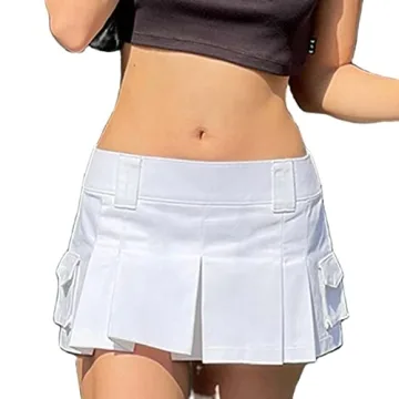 Show more Introducing the YYDSTYLE Women Low Waist Pleated Skirt, a stunning addition to your wardrobe that encapsulates the essence of Y2K fashion with a modern twist. Made from a premium cotton blend, this mini skirt is not only breathable and lightweight but also incredibly soft, ensuring all-day comfort no matter the occasion. With its unique design featuring five-pointed star panels, a captivating bandage structure, and an elegant low cut waist with a back zip, this skirt guarantees to highlight your feminine silhouette and make a statement wherever you go!
