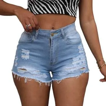Yyibsones Women's Casual Ripped Stretchy Denim Shorts Frayed Raw Hem Shorts Jeans (Light Blue, XXL, xx_l)