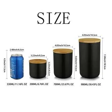 YYW Ceramic Jar with Lid, Kitchen Canisters Set with Airtight Seal Bamboo Lid, Black White Food Storage Canister for Tea, Coffee Bean, Sugar, Flour (Black:three piece)