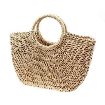 YYW Straw Bag For Women Hand-Woven Round Rattan Summer Beach Bag Large Straw Handbags (Brown)