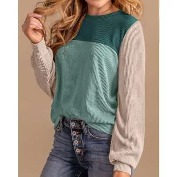 YZEGGO Women's Pullover Fall Shirts - Long Sleeve Colorblock Knitted Tops