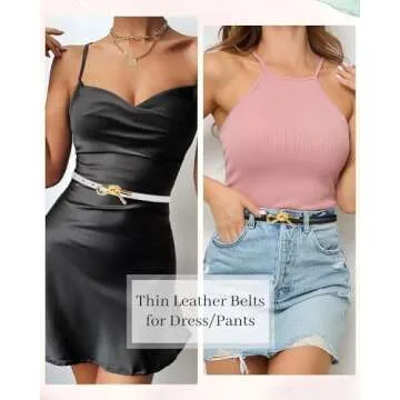 YZFSM 2 Pack Women Skinny Leather Belt Solid Color Gold Buckle Adjustable Waistband for Dresses Jeans Coats (Gold Buckle Black+White)