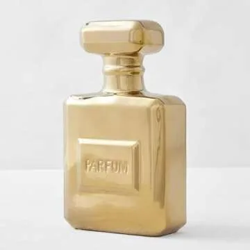 Z Gallerie Gold Ceramic Perfume Bottle Coin Bank - Piggy Bank for Tabletop, Shelf, Office Desk - Money Bank Gift for Women - 11"