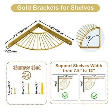 Z METNAL Decorative Shelf Brackets, Brass Metal Shelves Bracket, Wall Decor, Modern Shelving Bracket for DIY Floating Shelves,Gold,8 inch,2 Pcs