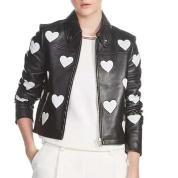 Zabsh Women’s Motorcycle White Heart faux Leather Jacket
