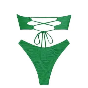ZAFUL Army Green Bikini Sets for Women Summer Vacation Back Lace Up Adjustable High Cut Teen Girl Swimwear Green M