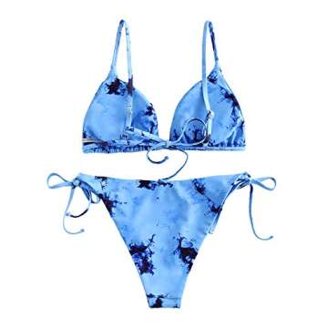 ZAFUL Bikini Sets for Women 2 Piece Tie Dye Bikini Top Thong Ribbed Swimsuit Set in Blue
