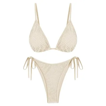 Show moreIntroducing the ZAFUL Bikini Sets for Women Triangle Tie Side 2 Piece Swimsuit – a stunning blend of style and comfort, perfect for making waves at the beach or by the pool. This beautiful apricot bikini set is crafted from a high-quality blend of 85% Polyester and 15% Spandex, ensuring durability and a snug fit while showcasing a fashionable net-like pattern that adds sophistication to your swimwear collection. Whether you are lounging at a tropical paradise or attending a vibrant pool party, this bikini set makes you feel radiant and confident.