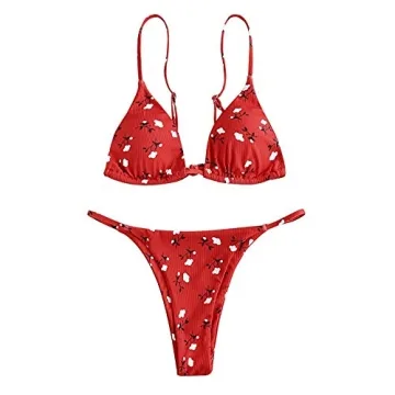 ZAFUL Floral Bikini Set - Sexy Triangle Top & Cheeky Thong Swimwear